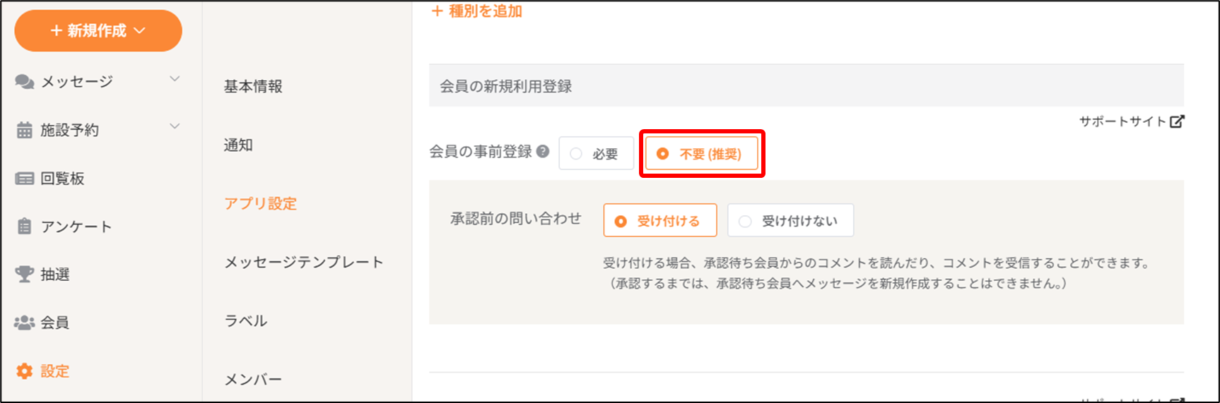 会員の事前登録が「不要」になっている(管理サイトに未登録の会員の新規登録を許可している)場合に