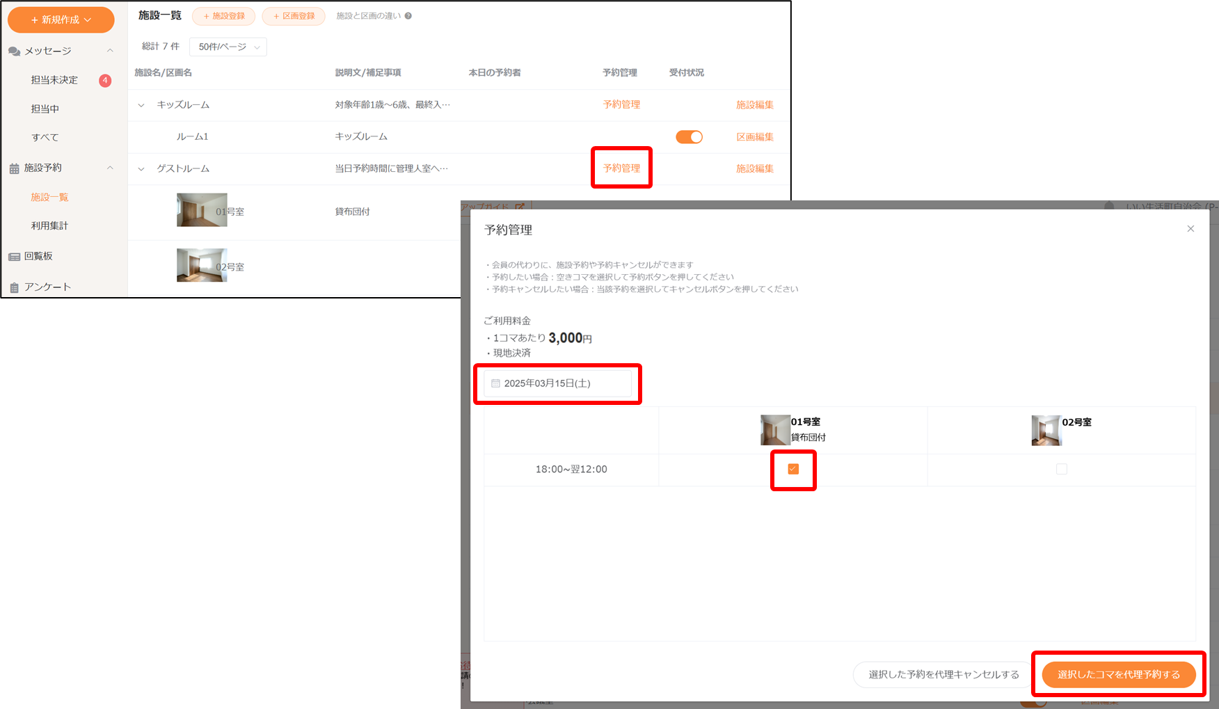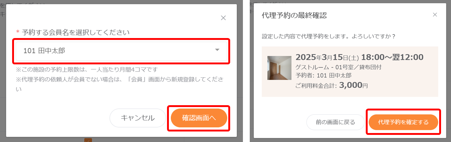 2.2 施設の代理予約/代理キャンセル(※必要な場合のみ)